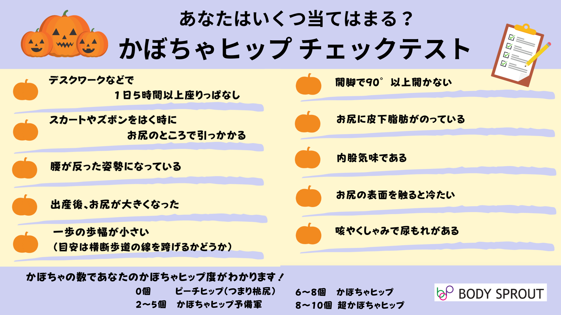 本記事では、かぼちゃヒップチェックテストや対策ストレッチなどをご紹介します。