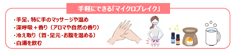 「海外の研究では、長時間連続で作業するよりも短い休憩を頻繁に挟む方が、集中力や創造性が維持されやすいという報告もあります。短時間でできるケアをこまめに取り入れることが自律神経の過度な緊張をほぐすうえで有効です」(石原先生)。
