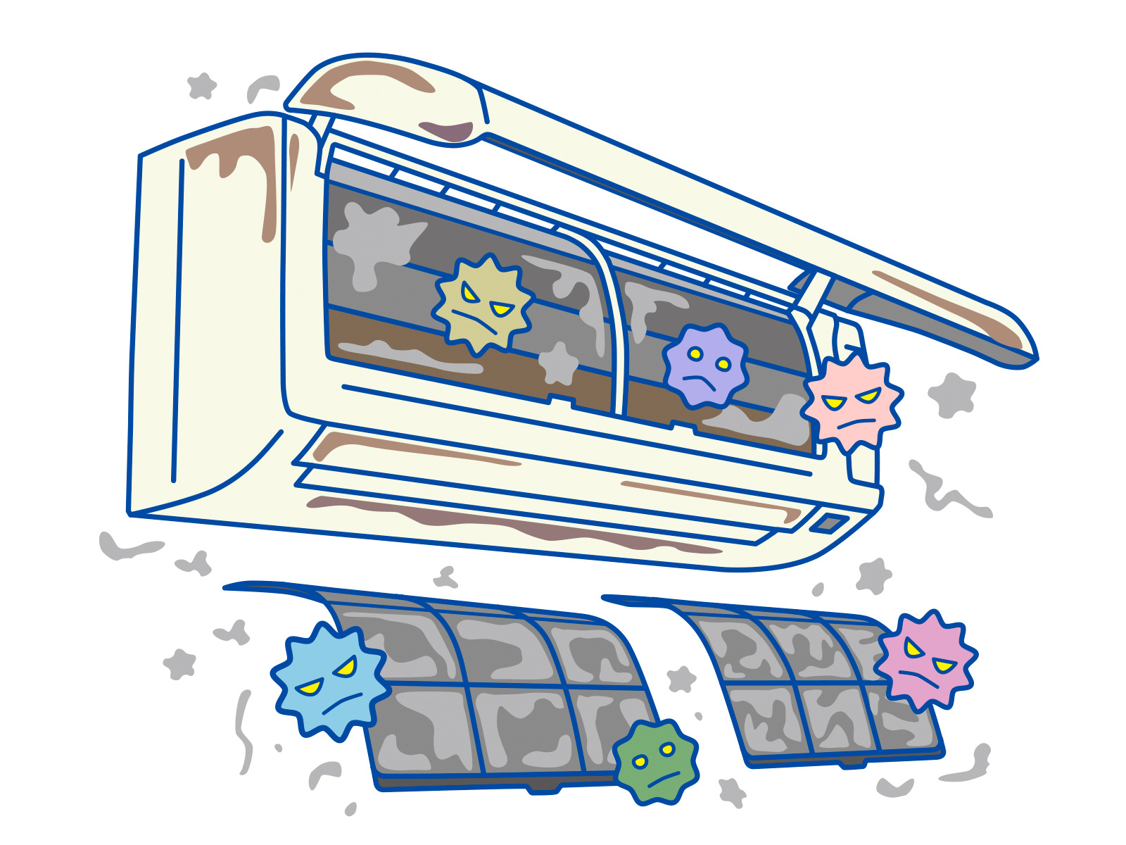 エアコンに汚れがたまるとカビ菌のエサになるため、