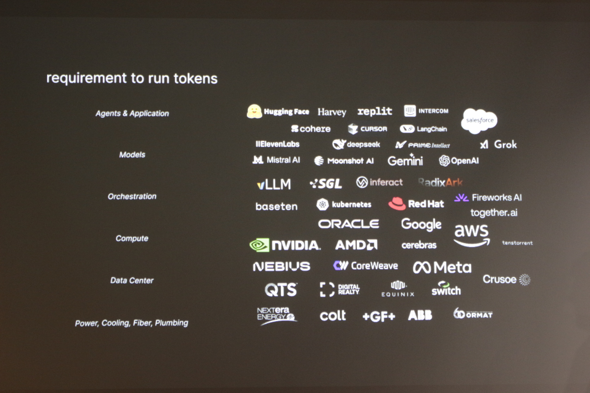 発表会で繰り返し語られたのが「トークン(AIが文章を理解・処理するための最小パーツ)」の重要性だ。原氏は、ユーザーが日常的に使う生成AIの裏側では膨大なトークンが動いており、AIエージェントや推論のループが増えるほど、その需要は爆発的に増えていくと説明した。