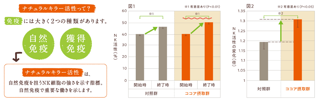 つまり、ココアを摂取したグループの方が、より自然免疫力が高くなったことを示唆しています。