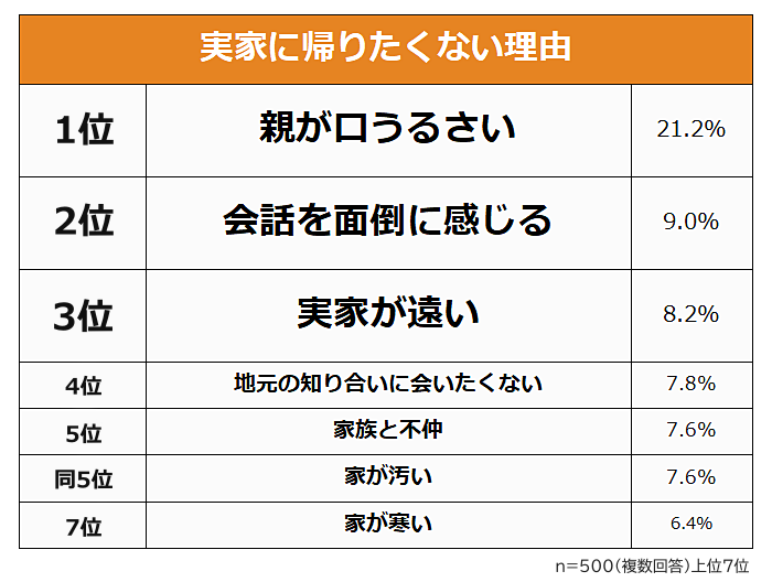 男女500人に聞いた、「実家に帰りたくない理由」ランキング (2/2)
