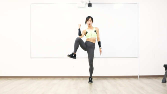 2.右ヒジと左ひざ、左ヒジと右ひざとを交互にくっつける