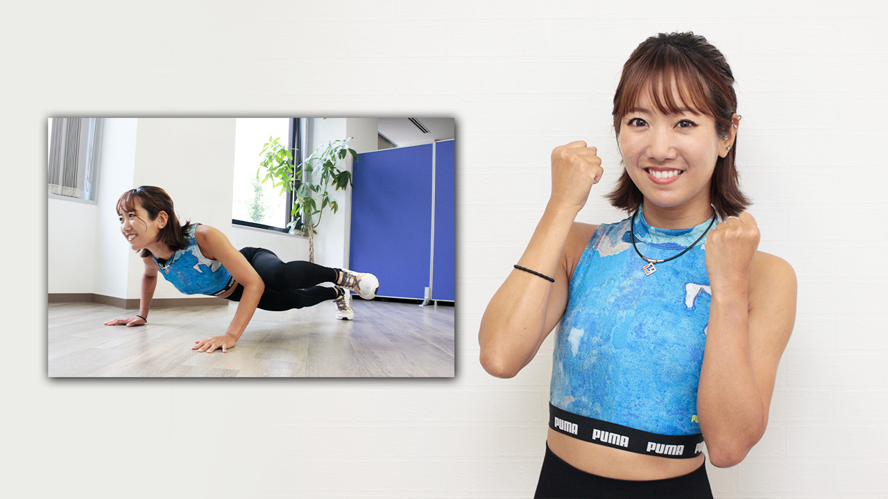 プランクの種目の際は、床に厚手のタオルなどを敷いて、腕を痛めないようにしてください。