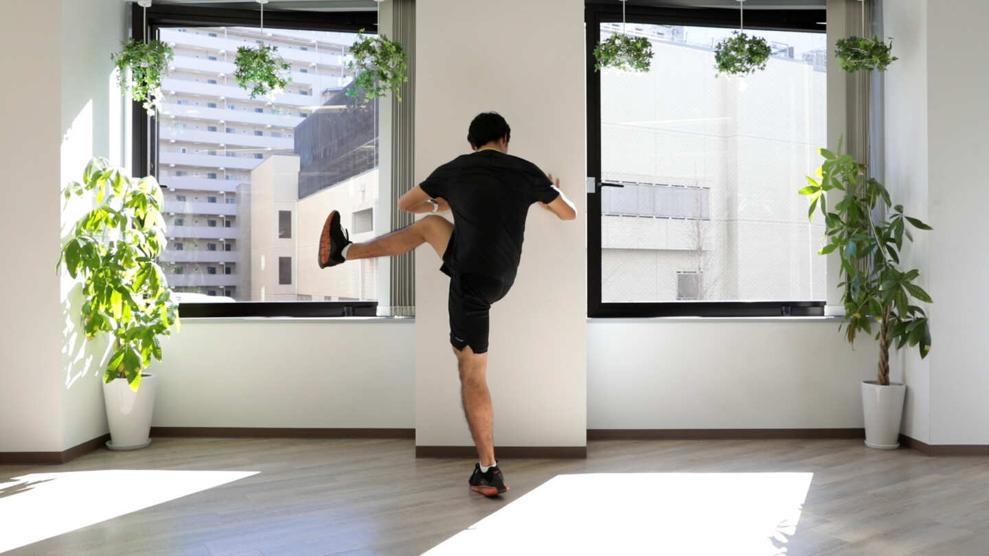 片脚でバランスを取るため、上体が傾いたり、膝が内側に入ったりしやすい種目です。不安定なまま行うと、膝や腰に過剰な負担がかかります。体幹を締め、背中をまっすぐに保つ意識を持つことで安定したフォームを維持できます。