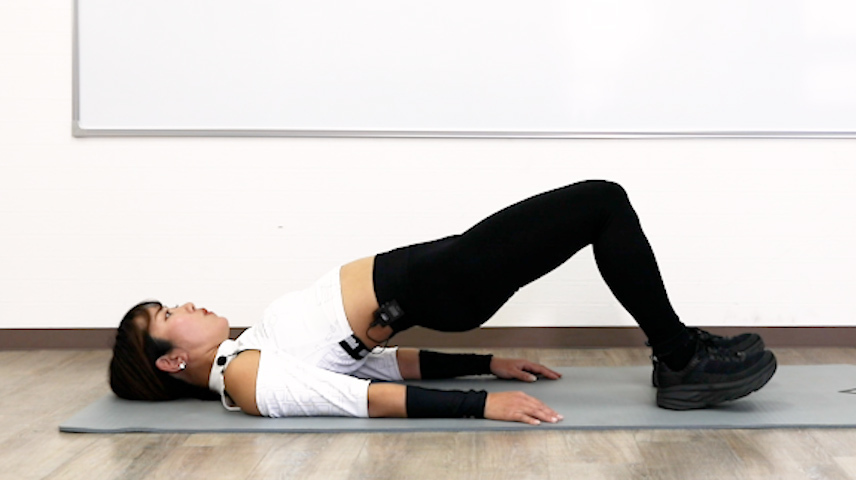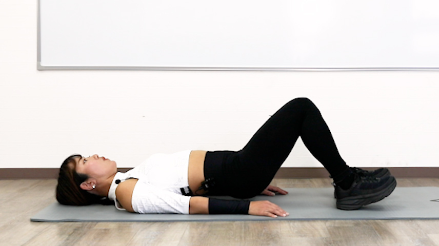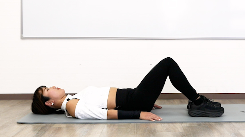 1.仰向けで膝を90度に曲げ、足の裏で地面を踏ん張る