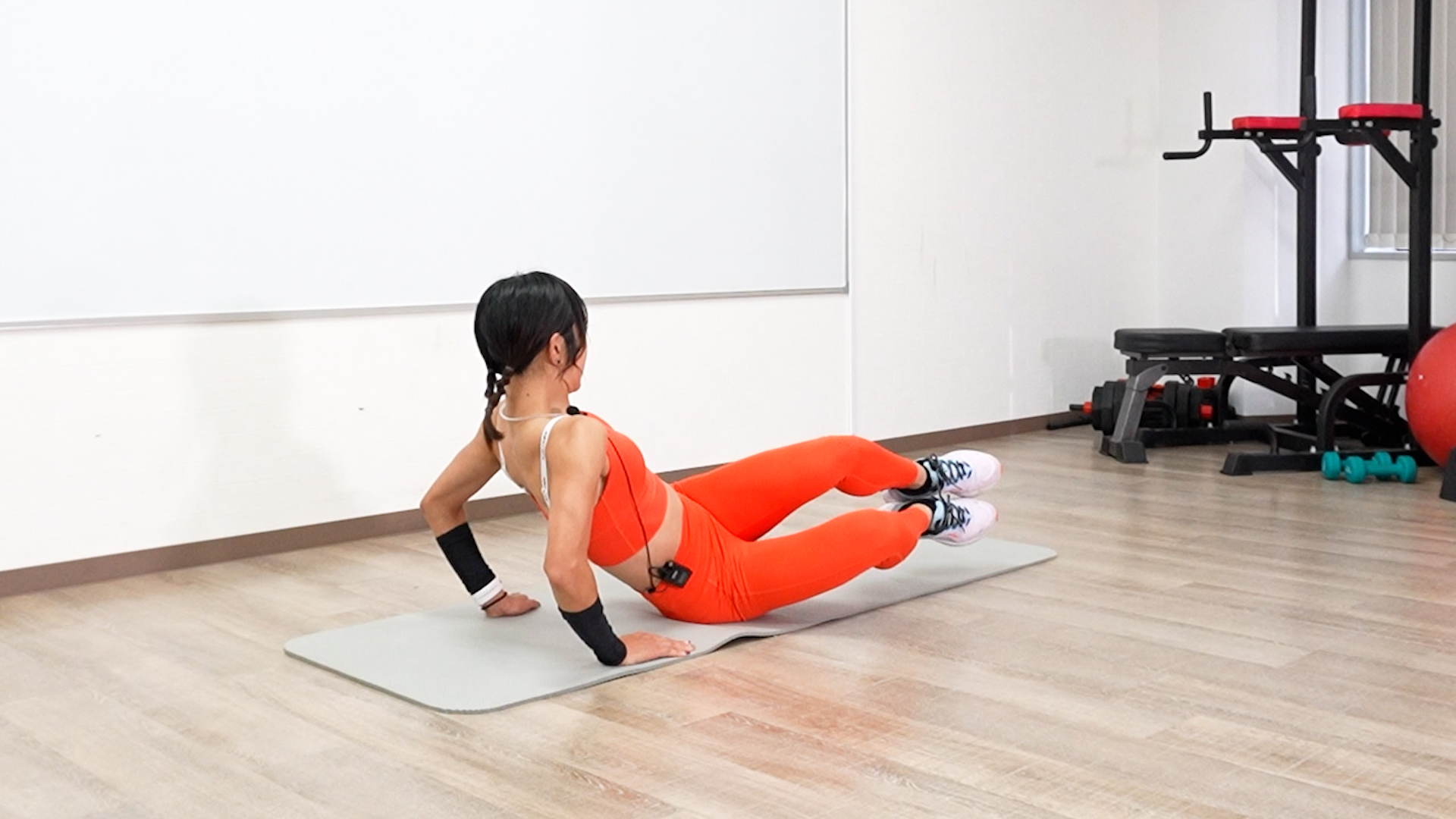 床に寝転ぶ種目では、床に厚手のタオルを敷くか、ベッドの上で行うのがおすすめです。最後まで一緒に頑張っていきましょう。
