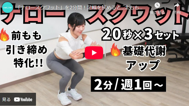 今回は、「ナロースクワット」をご紹介。下半身の大きい筋肉をしっかりと鍛えて、筋力とともに基礎代謝もアップさせていきます。