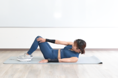 1.うつ伏せになり片肘を床につき、反対側の手で体を支えます