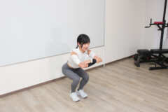 2.お尻が膝の高さに来るまで下げて戻す