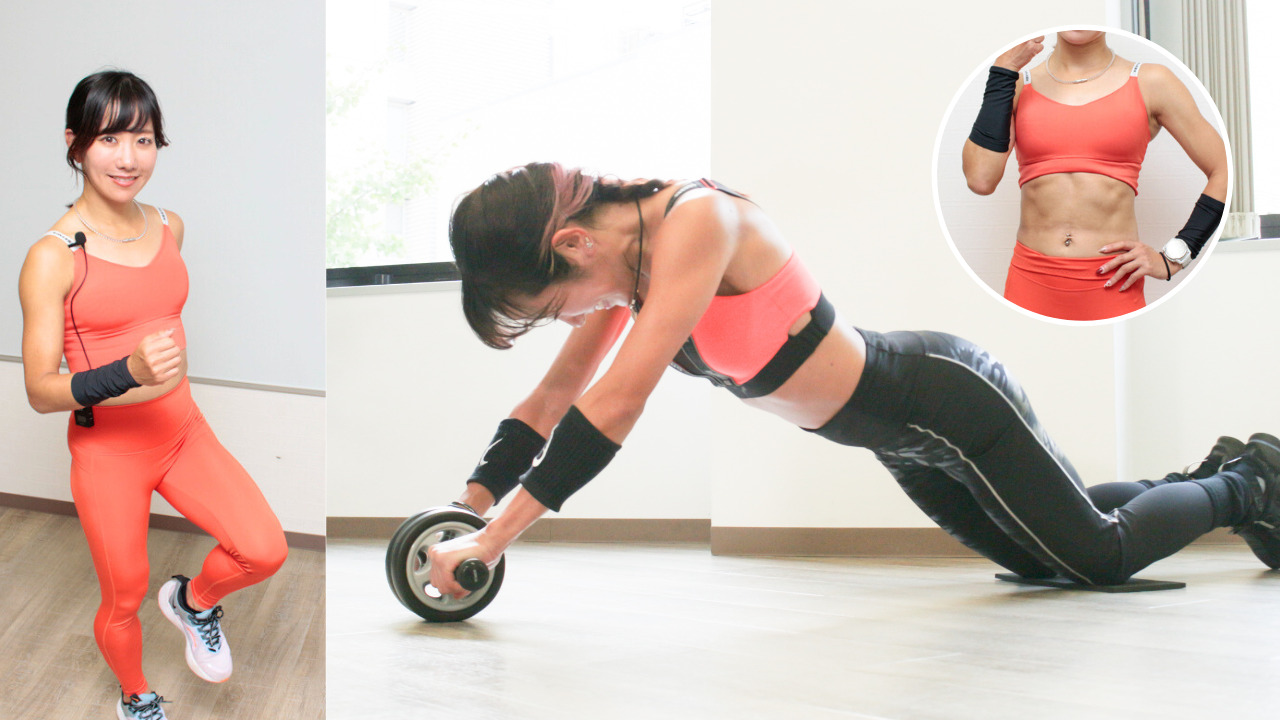 腹筋ローラーで腹筋に負荷をかけ、有酸素運動で更に追い込む。