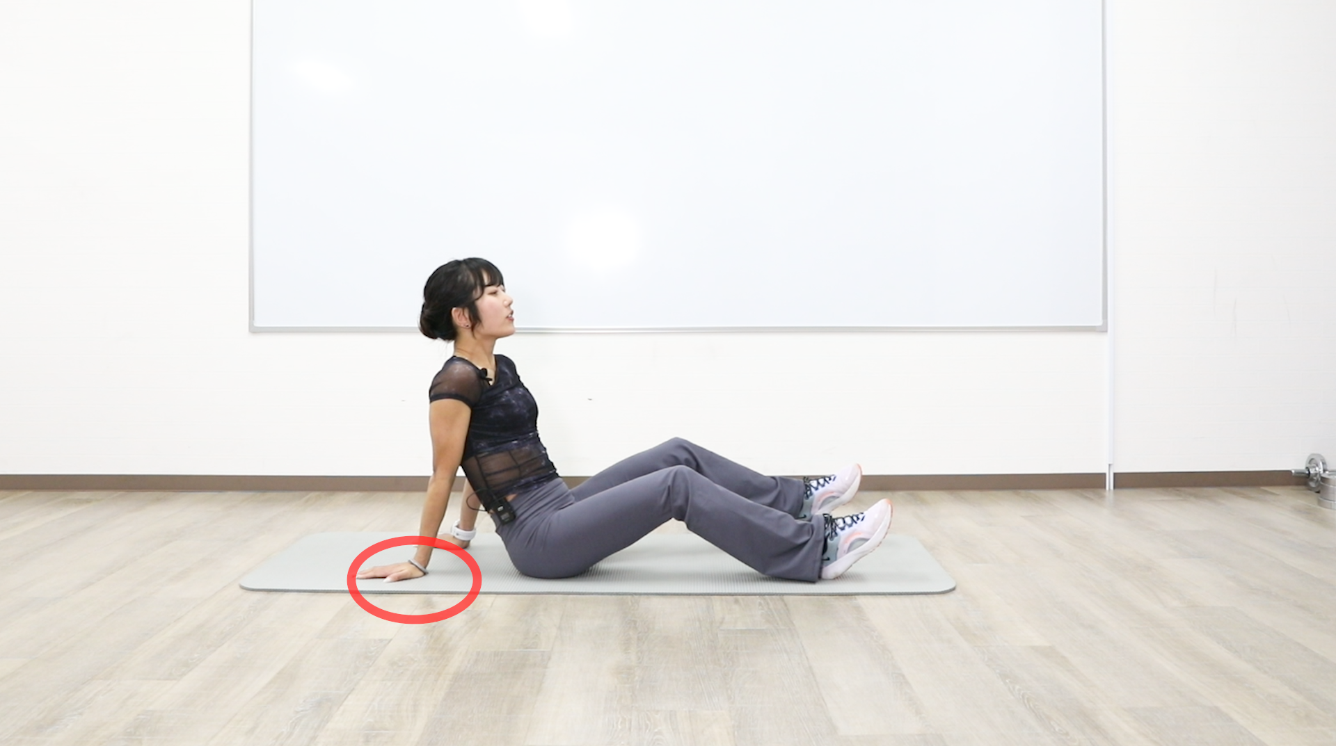 1.仰向けになり、手ひらを地面につける