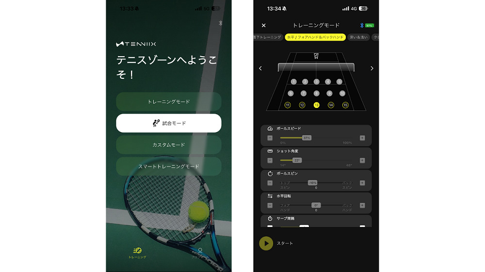 ちなみにアプリ以外でも、音声アームバンドに話しかければトレーニングモードや試合モードなどの切り替えができる。こちらも電源ボタンを押し、Bluetoothでマシン本体と繋ぐだけ。
