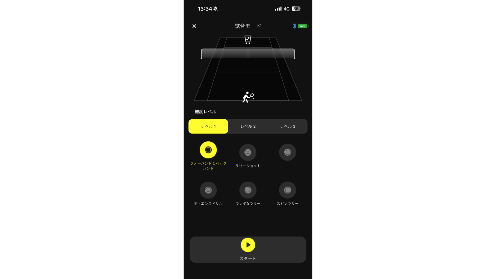 やはり気になるのがラリー練習。対人だと何かと気を使ってしまうし、ミスに延々とつき合わせるのも申し訳ない。そんな“あるある”な悩みを解決できるのが「マッチモード」だ。