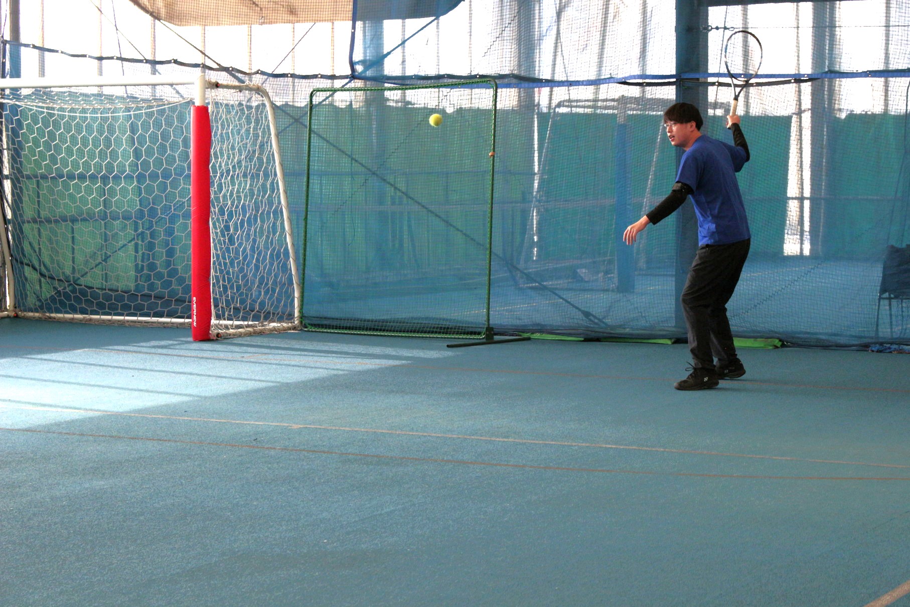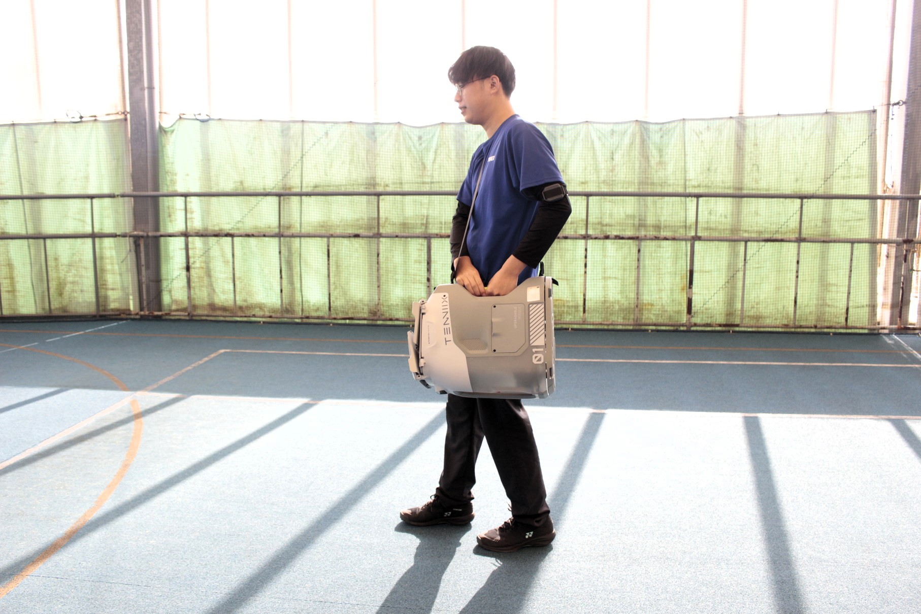 地味に気になるのが音の大きさだ。実際に聞いてみると試合モードのときにやや起動音が大きくなる。それでも近所に配慮するほどの大きさでもなく、コート外には聞こえない程度だった。