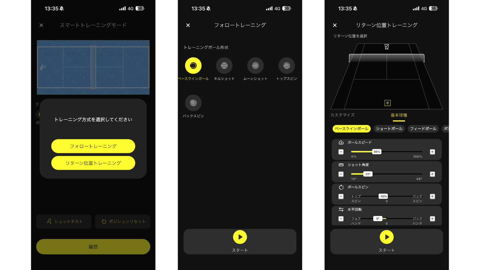さらにトップスピンやバックスピンといった回転量やコート上の着弾位置を指定できる機能も設定可能で、実戦に近いボールが再現できる。