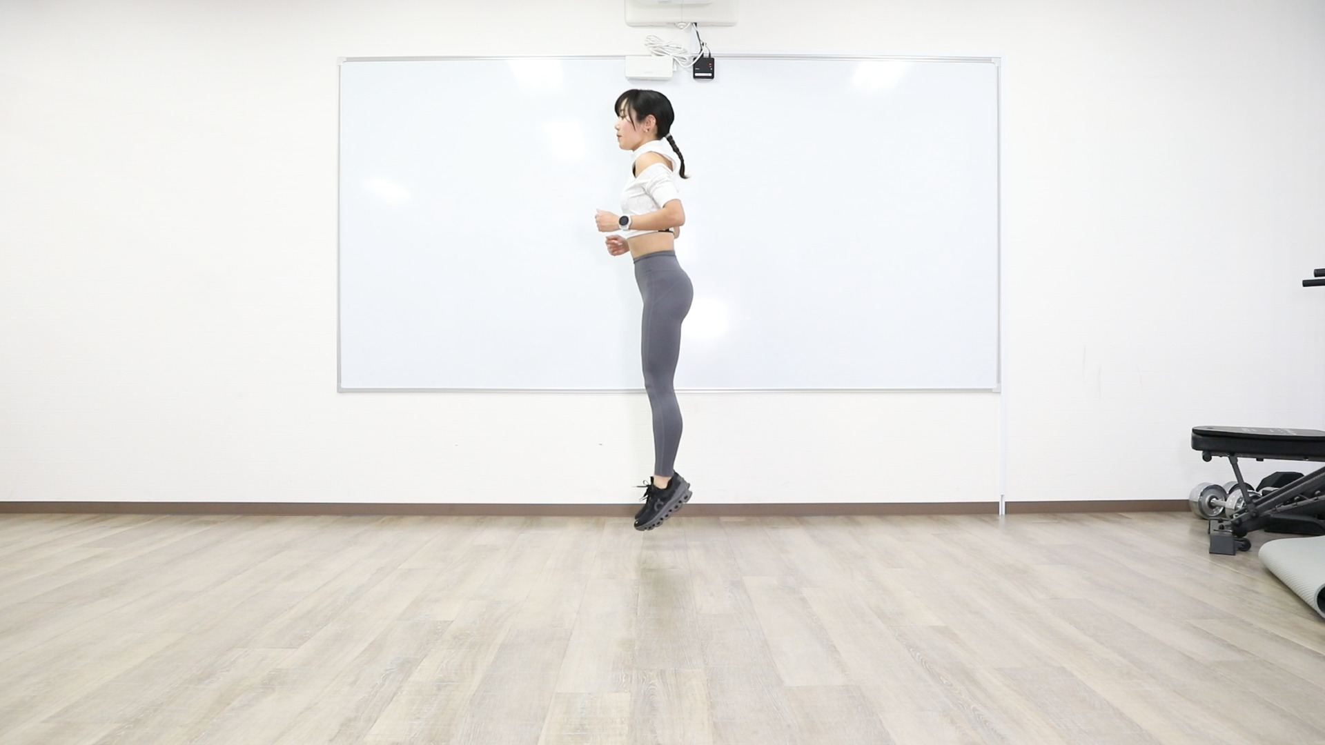4.上に向かってジャンプして、まっすぐ立った姿勢に戻る