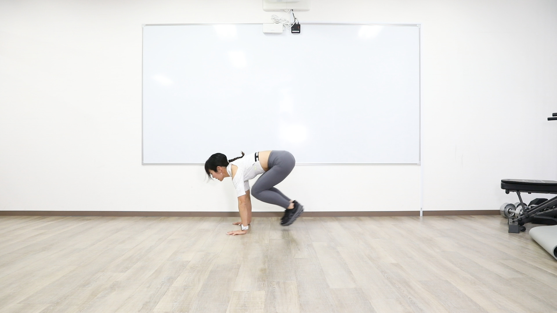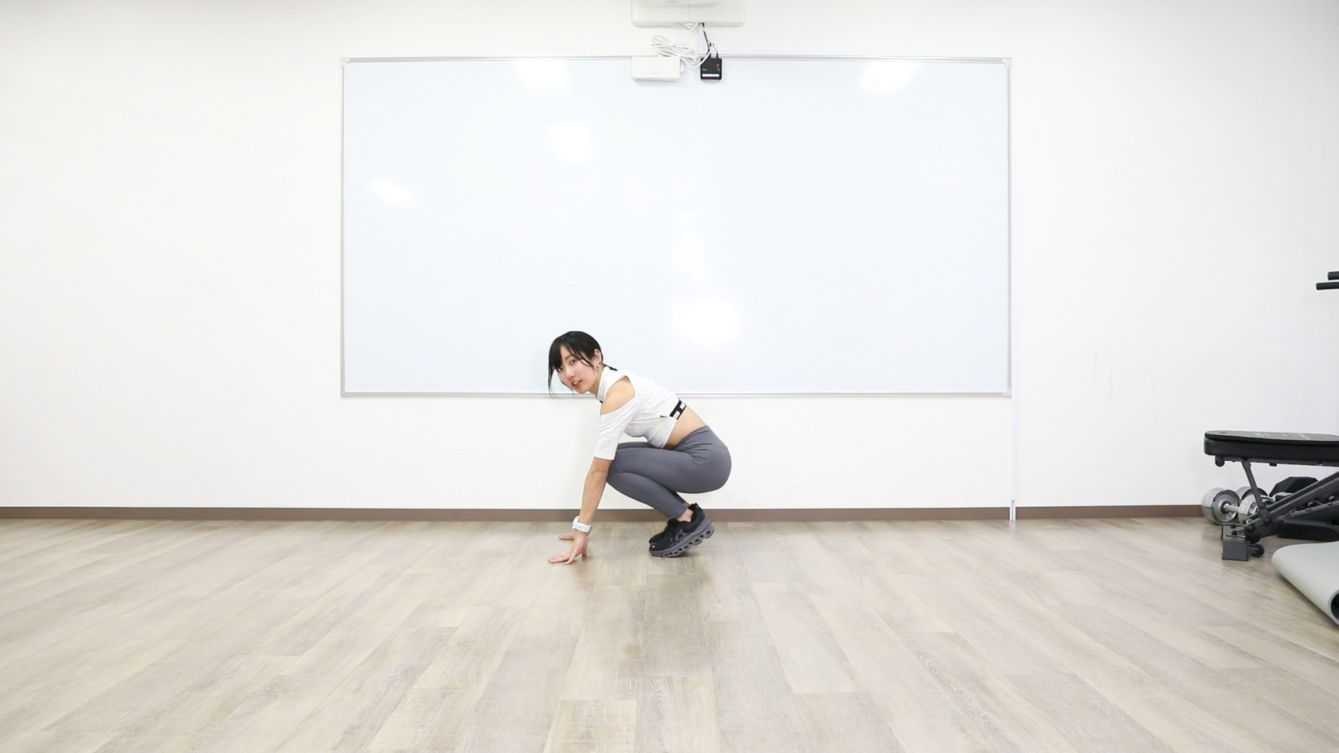 1.まっすぐ立った状態からしゃがんで、床に手をつく