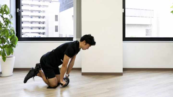 - 肩の真下に肘を置き、肘を立てて上半身を持ち上げる