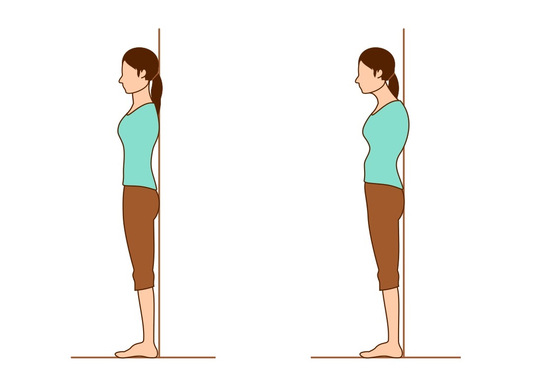 壁に後頭部がつけられない人は要注意。背骨(胸椎)の骨折により、背中が曲がっている可能性もあります。
