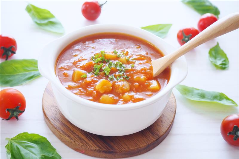 加熱に強いオリーブオイルを用いトマトジュースを温めたミネストローネなどの加熱料理で組み合わせると、さらにリコピンの吸収率が高まりますよ。