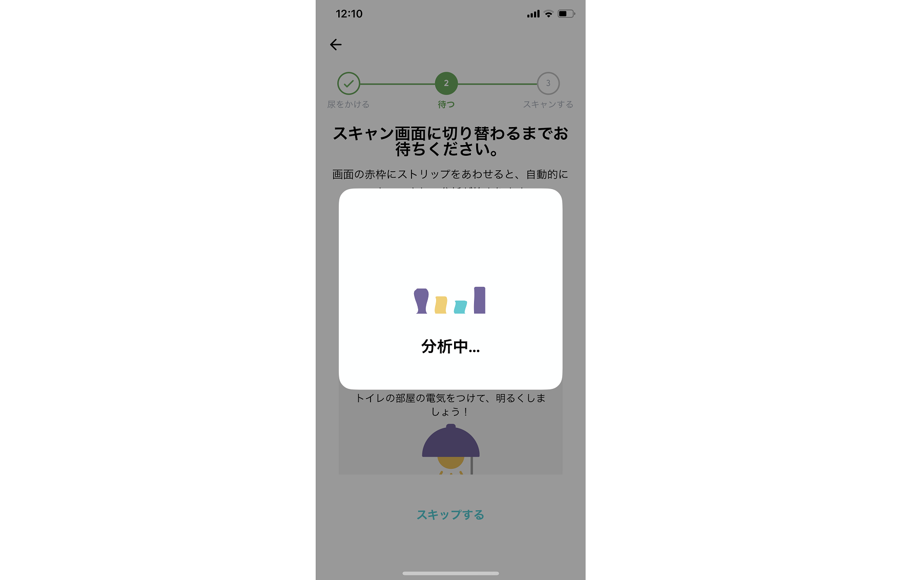 その後、専用アプリのガイドに従って試験紙を撮影。撮影位置も画面に表示される枠に合わせるだけです。思った以上にスピーディー。