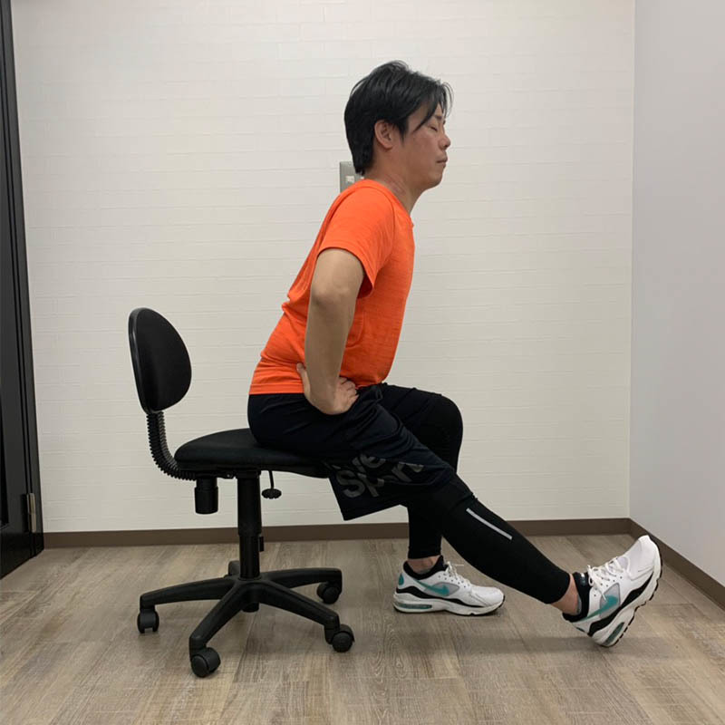 椅子に座り、背筋を伸ばします。